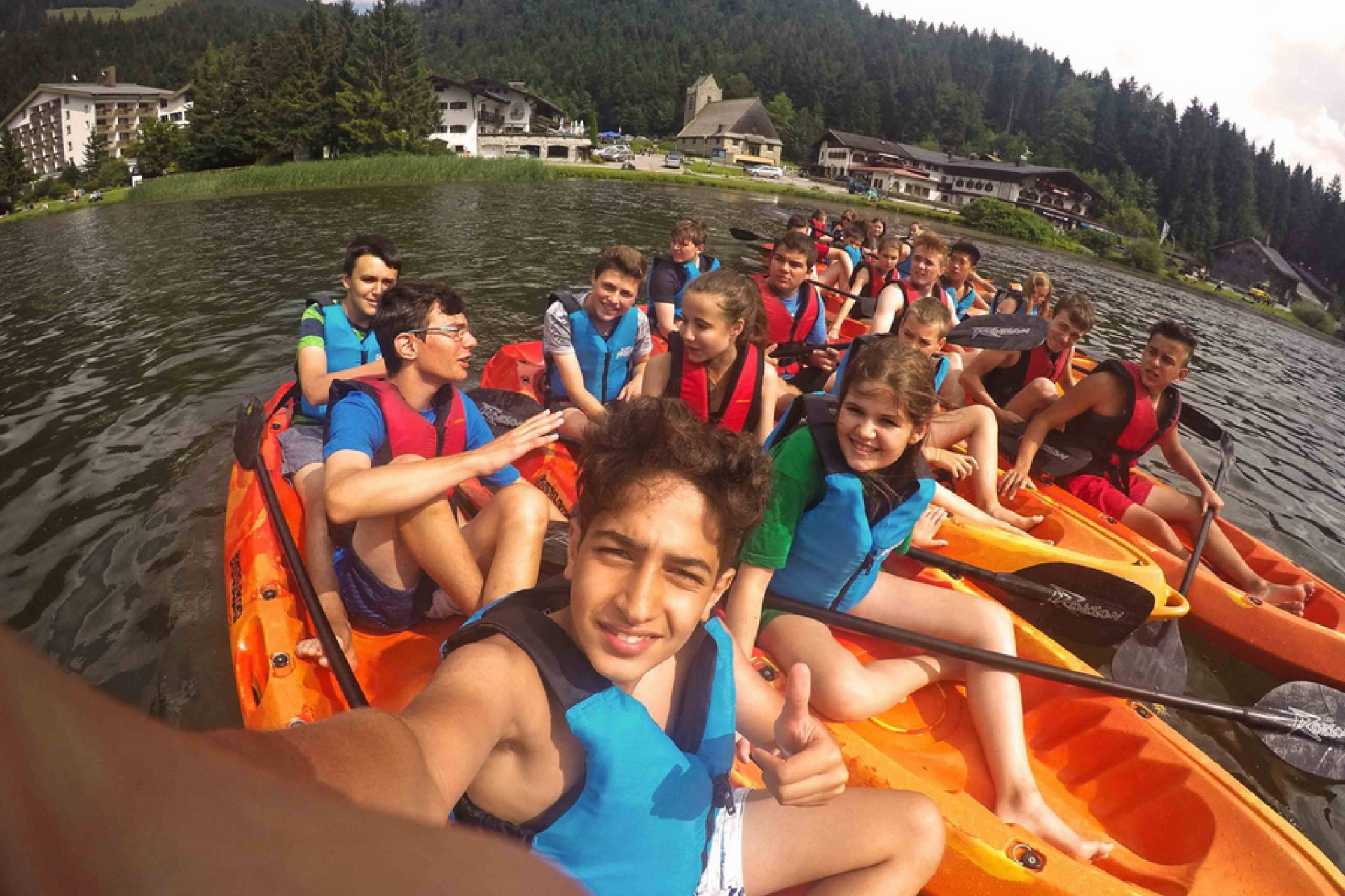 Nuestro campamento cuenta con aulas luminosas, instalaciones deportivas, y alojamiento cómodo con pensión completa. Únete a nosotros para senderismo con GPS, construcción de balsas, y más.
